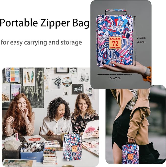 - 【Colored Pencils Zipper Case Set】:Kalour set of 72 colored pencils contains 72 different color,You can find any color you need in these to enrich your coloring book.Perfect set for Artists adults beginners.