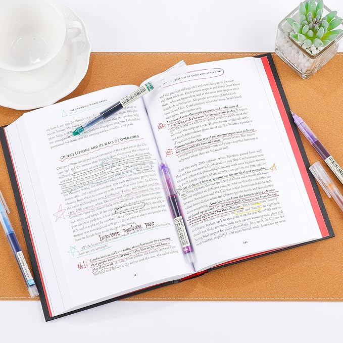- SUPER QUICK DRYING : with precision tip and smooth writing ink and will not leak ink, the rollerball multicolored ink dries quickly that help you keep work neat, colored pens for journaling, color pens for note taking.