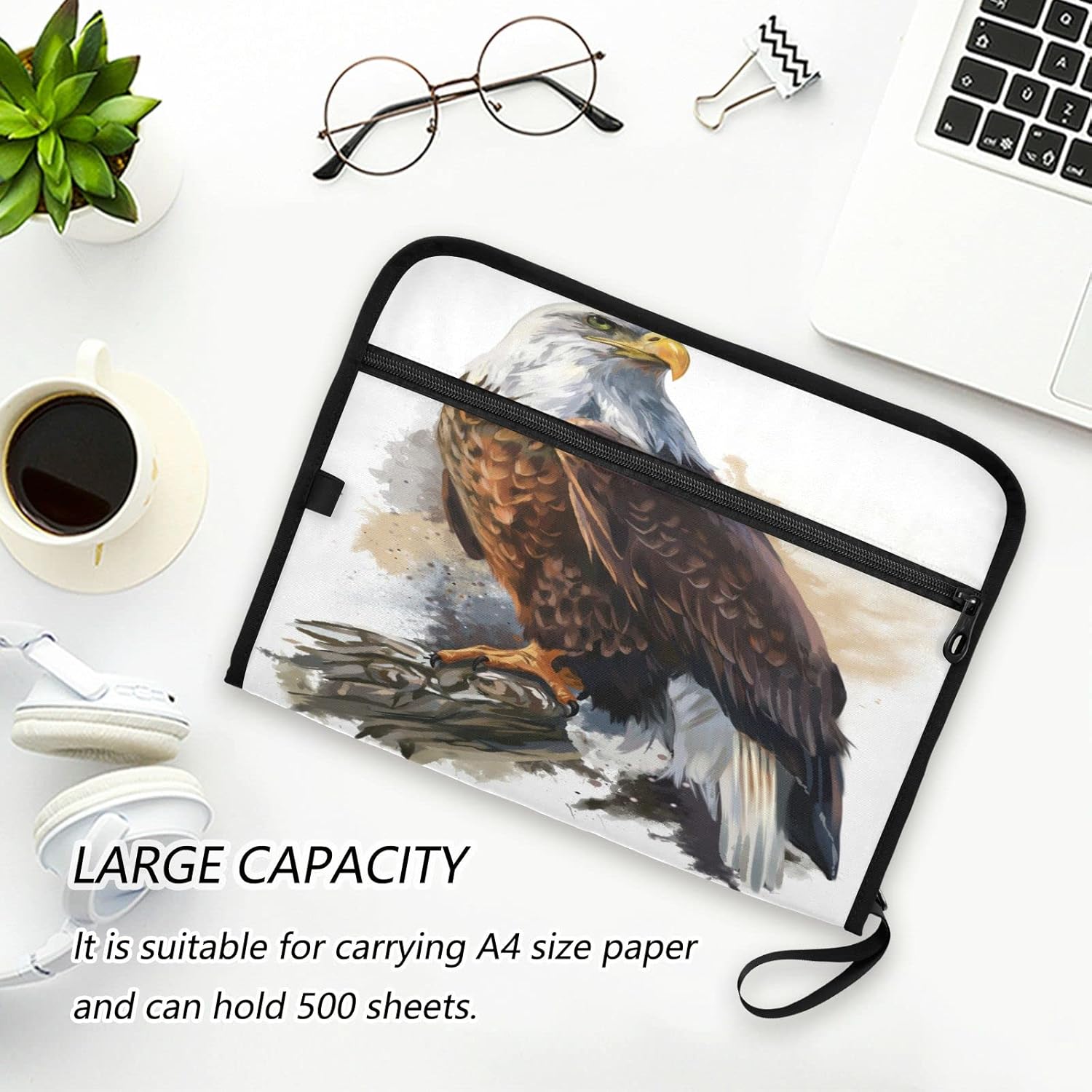 Bald Eagle Expanding File Folder 13 Pockets with Zipper Expandable Filing Folders Accordion Document Files Organizer for A4 Letter Size Paper
