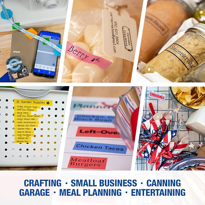 - TAPE VARIETIES - Epson LABELWORKS PX label tapes are perfect for home, office, and hobby use, offering options like matte, metallic, gold imprint, pearl, ribbons, and more! Print labels up to 1” (24mm) wide, ideal for everything from crafting and organizing to adding personal touches to gifts.