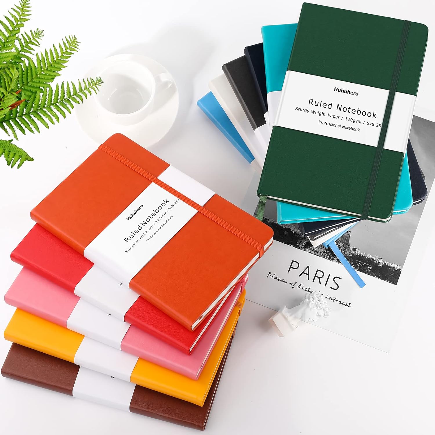 Huhuhero Notebook Journals, Ruled Journal for Writing, Premium Thick Paper Lined Hardcover Notebooks Bulk for Office School Note Taking College School Supplies 5"×8.25" (10, Teal)