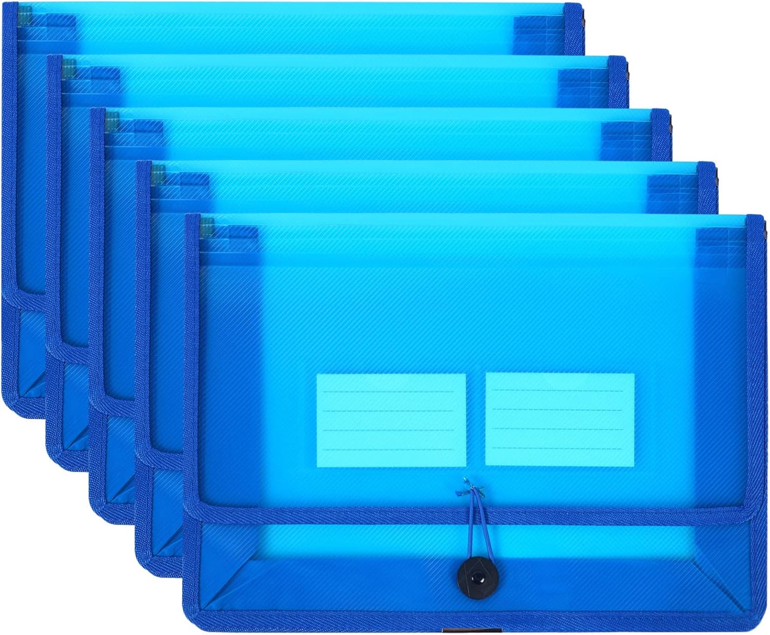 Eco-Friendly Plastic File Folders, 5 Pack Poly Expanding File Wallet, Expandable Envelope Organizer Document Folder with Elastic Band and Button Closure, with Small Two Pockets, Blue