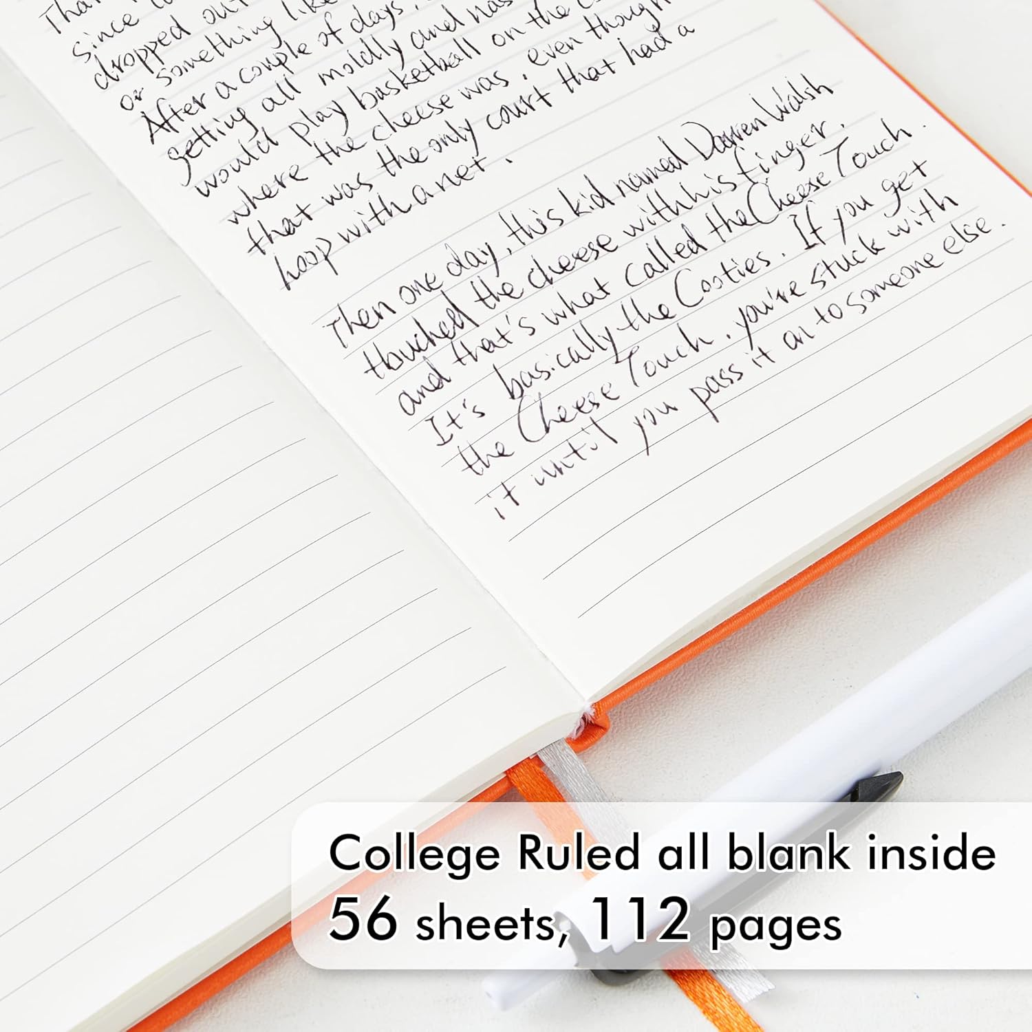 - These college ruled notebooks are all blank inside with 112 lined pages (56 sheets), which would be convenient for daily usage. The hard cover journal has a water-resistant faux leather cover, round corners and bookmarks, which is designed to lay and open flat. There’s a “date/page” column on the top of every page. You can use it as a reminder to let you remember those important dates and find the page you want in a very short time.