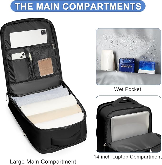 Travel Backpack For Women Airline Approved Carry On Backpack Flight Approved Waterproof Sports Luggage Backpack Casual Daypack Small Hiking Backpack Black Backpack