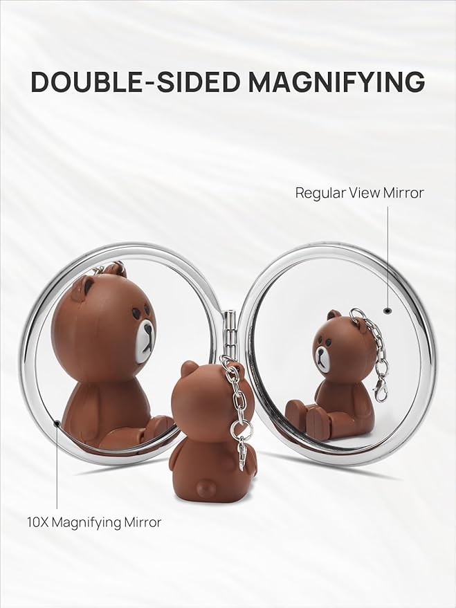 - 1X/10X MAGNIFICATION: A two-sided mirror suitable for cosmetic use. The main mirror perfectly reflects a clear image of the entire face while the other side is 10X magnified and is great for applying mascara, tweezing, plucking, flossing, etc