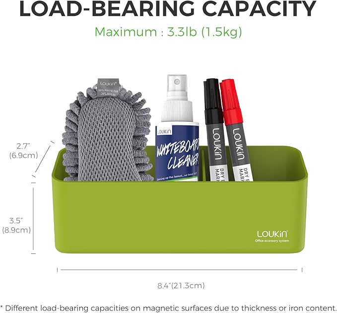 - SUPER LOAD BEARING: Secure magnetic storage organizer for whiteboards with a maximum loadbearing of capacity 3.3 lb (1.5 kg).