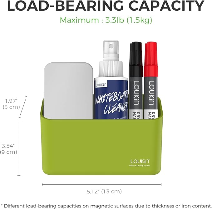- SUPER LOAD BEARING: Secure magnetic storage organizer for whiteboards with a maximum loadbearing of capacity 3.3 lb (1.5kg).