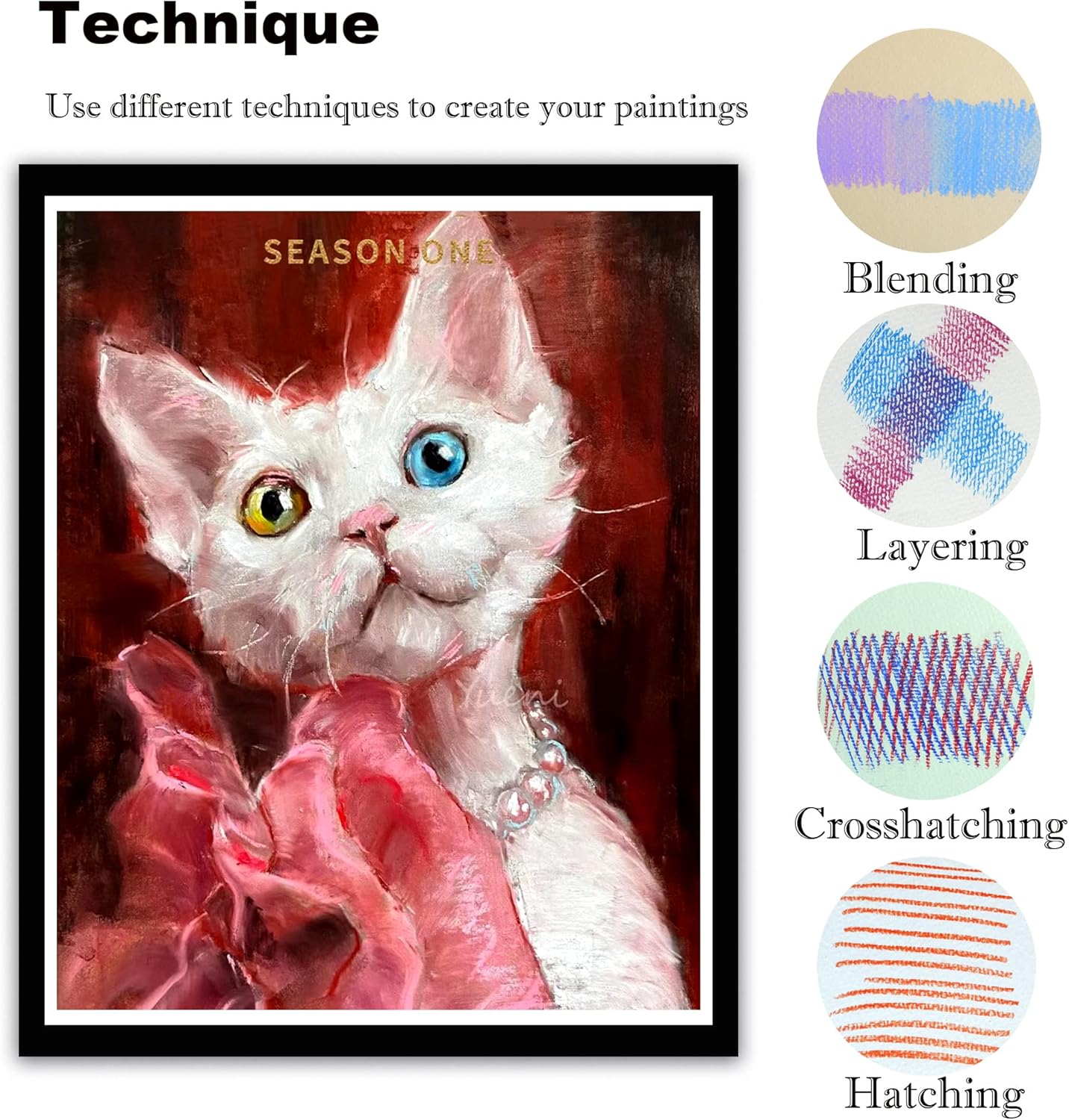 - BEGINNER TO ADVANCED:Colors do not fade easily and made of the finest quality materials,they can be dry-blended or smudged with either fingertips or a blending stump to create a variety of artistic effects.Good adhesion and excellent color make it suitable for everyone such as students, professionals, and ordinary person.