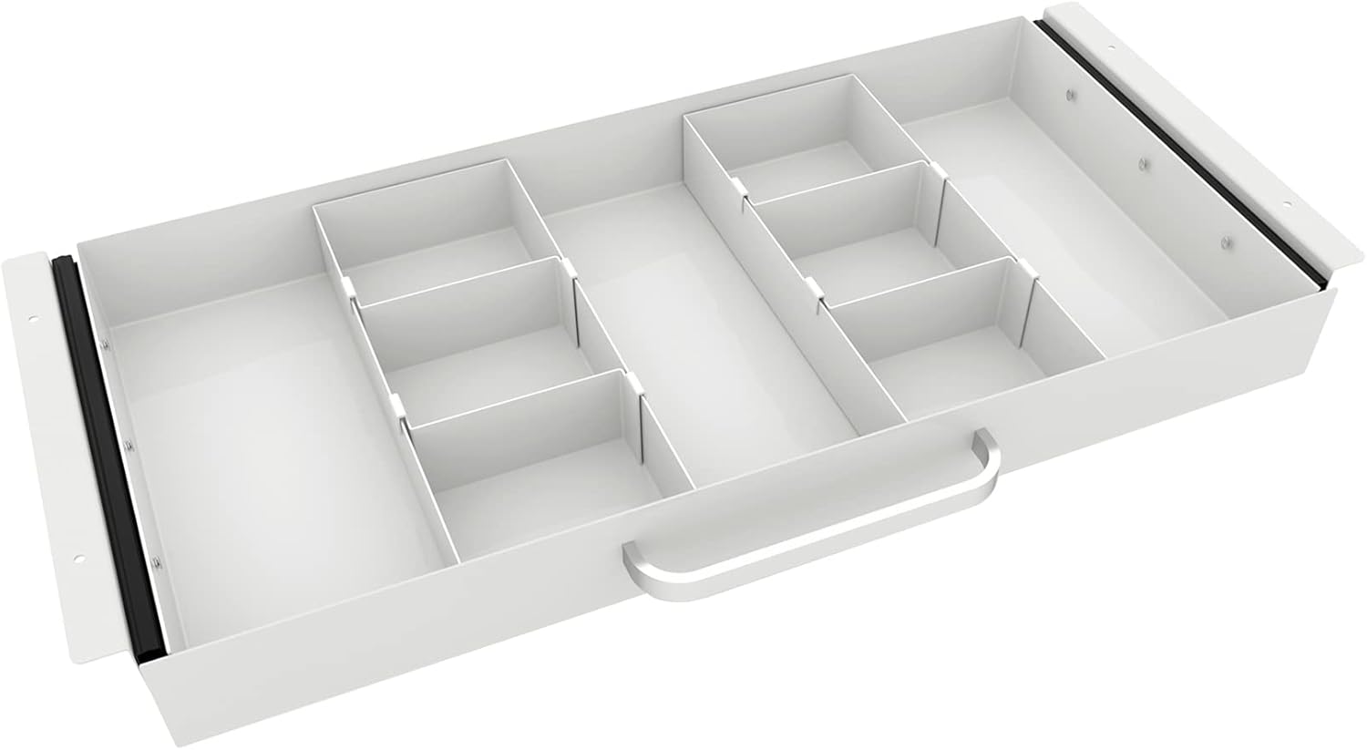 Large Size Under Desk Slide out Pencil Drawer White with Adjustable Space Divider Design for Storing Pencil and Office Accessories, Underdesk Pull out Tray Organizer Mounted for Sit Stand Workstation