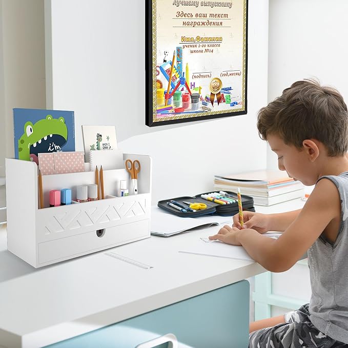 - 【Includes Drawer】Additional storage for your files, letters, magazines, pens, stamps, paper clips and more for your office desk organization! Or you can use the drawer as a key holder