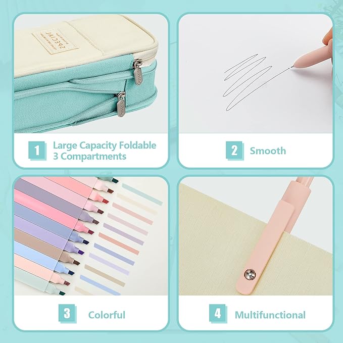- Nice Combination for You: the package you will receive comes with 12 pieces of pastel highlighters in different colors, 5 pieces of writing pens and 1 piece of pencil pouch; The abundant quantity and ideal combination can meet your different use and replacement needs, and you can share them with your family and friends