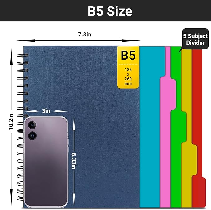 - 【Colored 5 Subject Dividers】5 different color tabs divide the sectioned notebook into 5 parts, easy for you to reach to each part and also you can write notes on each divide pages.