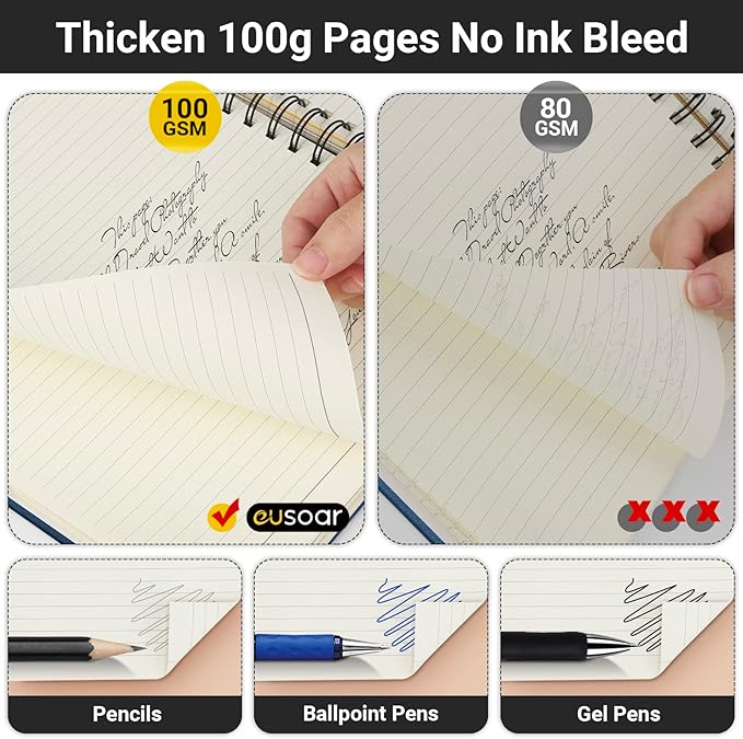 - 【Package Included】3 packs B5(7.3"x10.2") lined notebooks(each book has 240 pages/120 sheets of paper). And 100gsm thickened inner paper is great for smooth writing with no ink bleed. Also the beige color could greatly protect our eyesight.