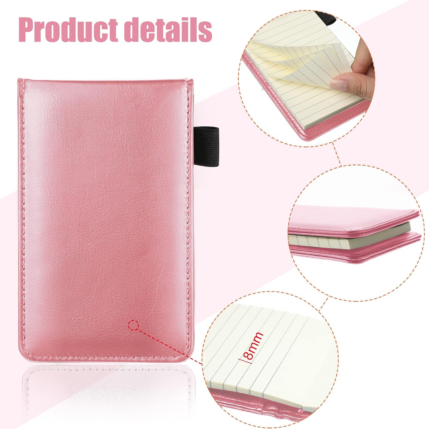Outus 10 Pcs Pocket Notebook with Pen Set Included Mini Pocket Notepad Holder with 50 Lined Sheets, Metal Pen, 8 Pcs 3 x 5 Inch Memo Book Refills, 30 Lined Paper Per Note Pad (Pink)