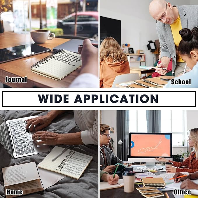 - Widely Applicable: These small spiral notepads perfect for business, conference, travelers notebooks, composition, schoolwork, for keeping a travelogue, a daily journal, planning, note-taking and anything important,and you can also use them for creative scrapbooking or handwriting books to inspire your creativity and imagination
