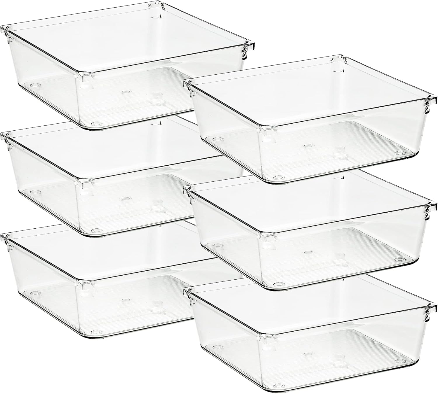 Ravinte 6 Pack Drawer Organizer - 6" X 6" Plastic Storage Bins, Acrylic Organizers with Non-Slip Pads Clear Desk Storage Tray for Makeup, Jewelries, Kitchen Utensils, Bathroom and Office