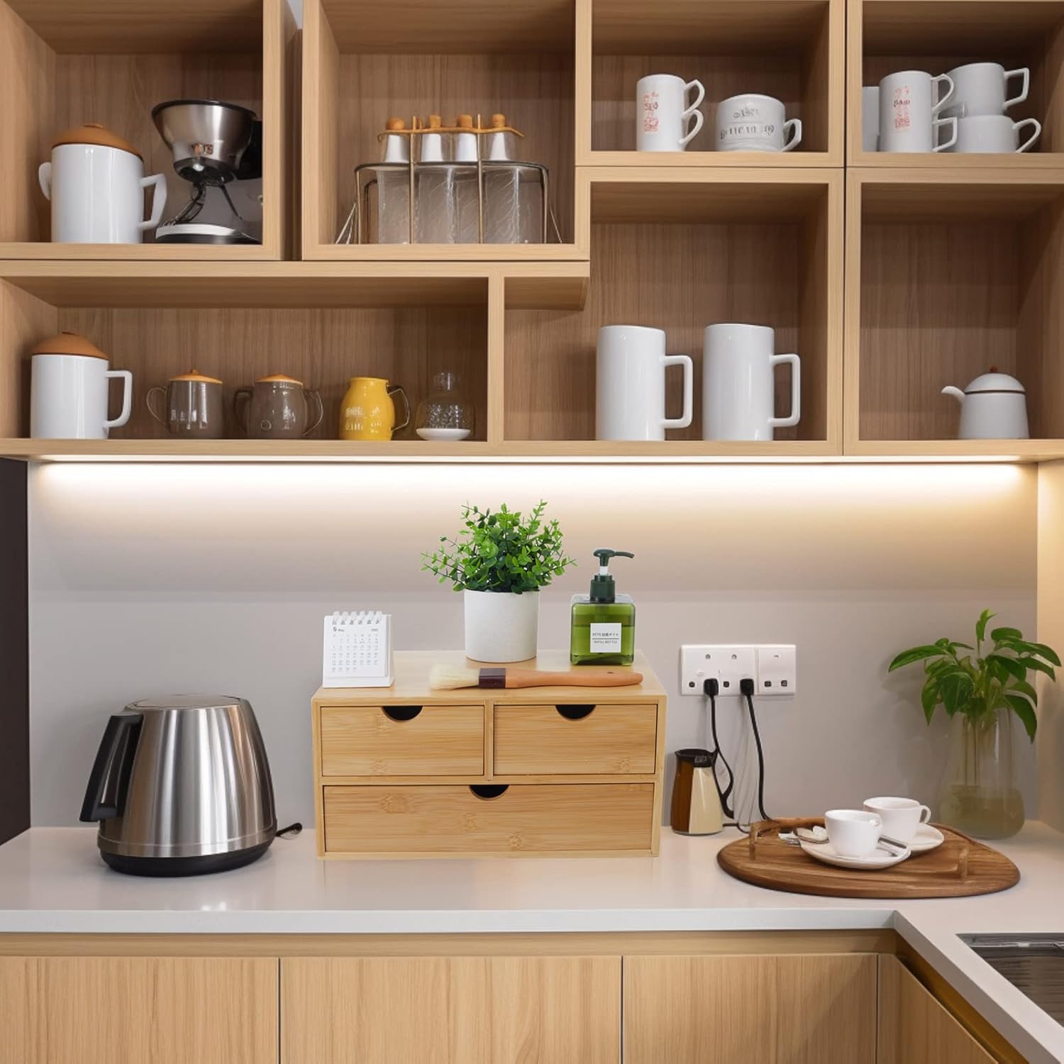 Bamboo Desk Organizer With Drawers Countertop Drawers 3 Drawers Counter Storage Box Corner Desk Organizer for Home Office No Assembly Required
