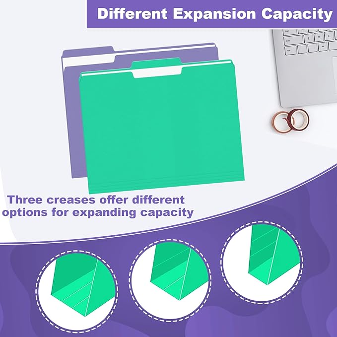 - KEEP YOUR DOCUMENTS TIDY: Organize different types of files by color-coding for quick and easy identification with these 3 tab file folders, helps you avoid filing mistakes, improve efficiency, and create neat, professional custom files.