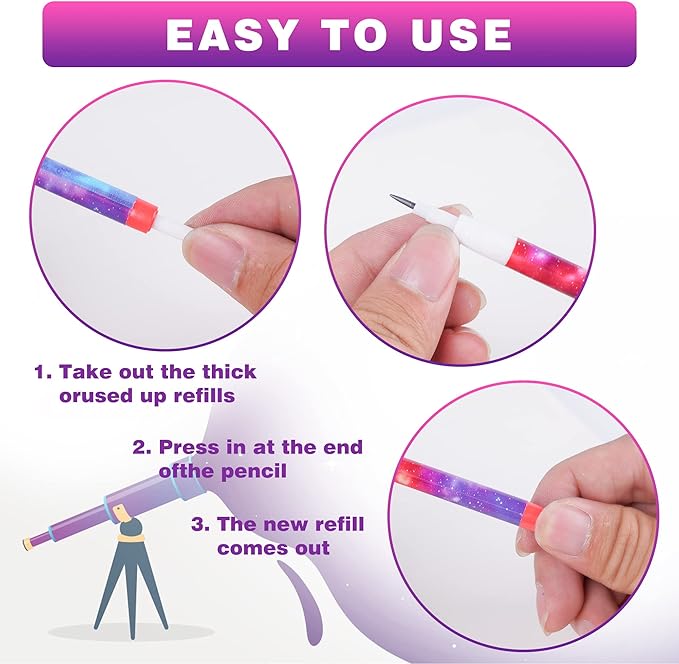 Kolewo4ever Galaxy 48-Piece Multicolor Space Theme Pencils, 0.5mm, Medium Point, Retractable, Non-Sharpening, Comfort Grip, Perfect for School, Home, Office, Gifting, Party Favors