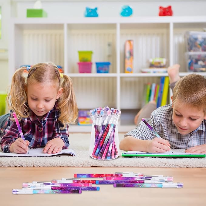 - Galaxy Themed Pencils: Set of 48 colorful galaxy themed pencils with starry sky and luminous stars designs for kids and adults.