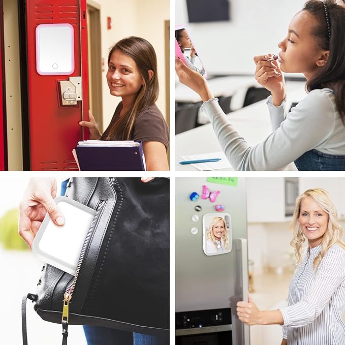 - Package Includes: you can get 2 pieces of light up magnetic locker mirrors in white and pink, enough to meet your daily use needs in home or office, magnetic design will bring you much convenience
