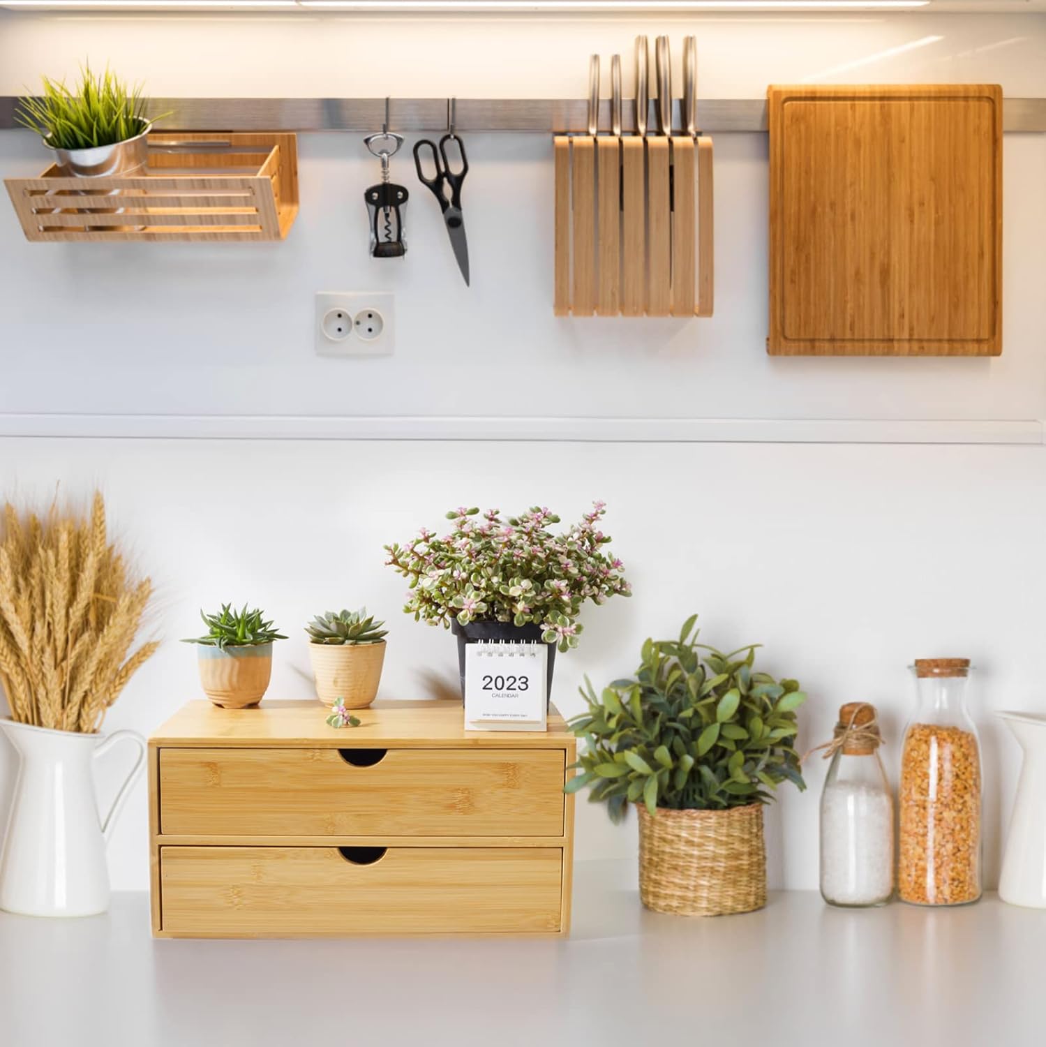 Bamboo Desk Organizer With Drawers Countertop Drawers 2 Drawers Counter Storage Box Corner Desk Organizer for Home Office No Assembly Required