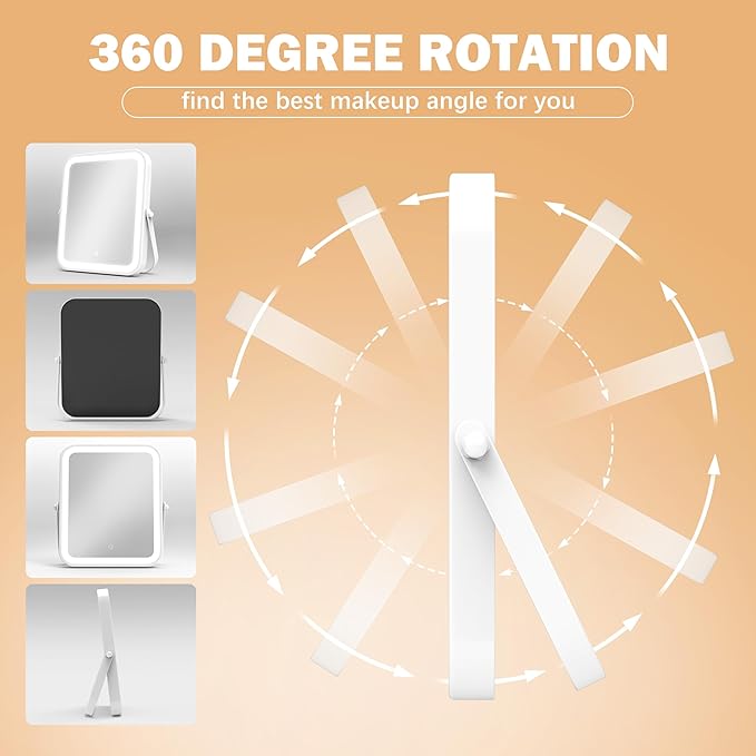 - 【Sturdy Stand and 360°Rotation】 Our light up mirror for desk features a robust U-shaped stand that provides stability and support. It ensures the mirror stays securely in place while you're using it. Additionally, the 360-degree rotation capability allows you to position the mirror at any angle you desire, making it convenient to use from various positions.