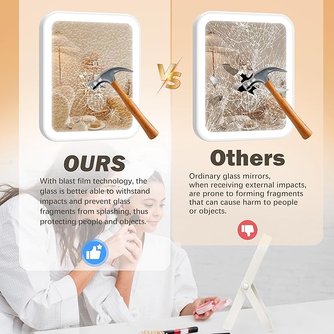 - 【Premium Service】 We stand behind the quality of our product and offer premium service to our customers. Our lighted mirror has passed all tests, including dropping, impact, and heavy pressure tests. If you encounter any issues with your mirror, don't hesitate to contact us, and we'll make it right. Trust us to provide the best possible experience with our premium lighted mirror for vanity table.