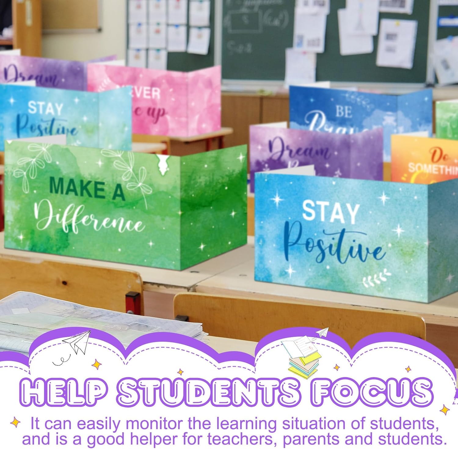 Honoson 24 Pcs Bulk Inspirational Privacy Folders for Students Cardboard Test Privacy Boards Motivational Words Desk Dividers Shield for Classroom School Study Supplies, 6 Styles(Watercolor)