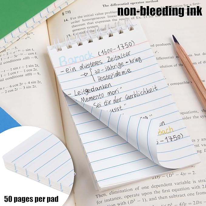 - TOP SPIRAL BINDING - Our ruled memo book features a top spiral binding that allows the pages to lay flat. This ensures the most comfortable writing conditions for both right-handed and left-handed users. The snag-free spiral binding won't catch on clothing or in purses or backpacks, providing a hassle-free experience. This mini memo book also allows for easy page-turning, enhancing your productivity.