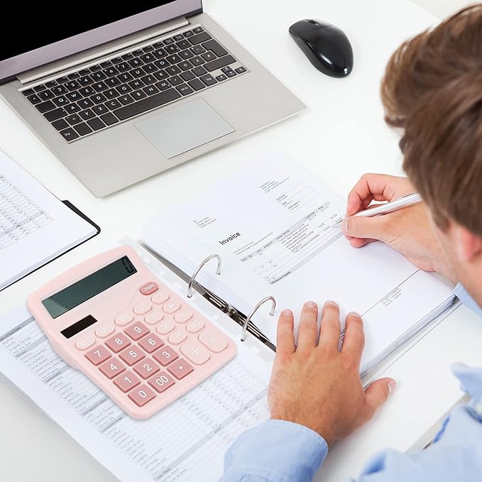 Desk Calculator, Envysun 12-Digit LCD Display Office Calculator – Dual Power, Compact and Lightweight, Easy-to-Read Display, Durable for Business, School, and Home (Pink)