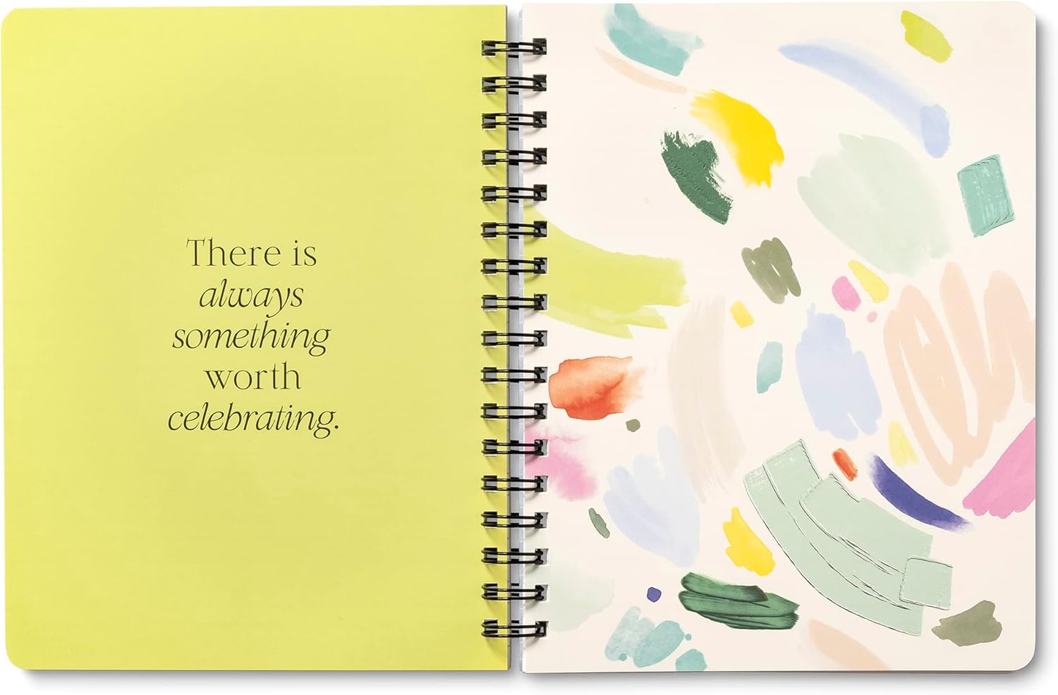 - INSPIRING COVER: This spiral journal has an artistic cover featuring a foil-stamped statement that says, Something Good Is Going to Happen Today.