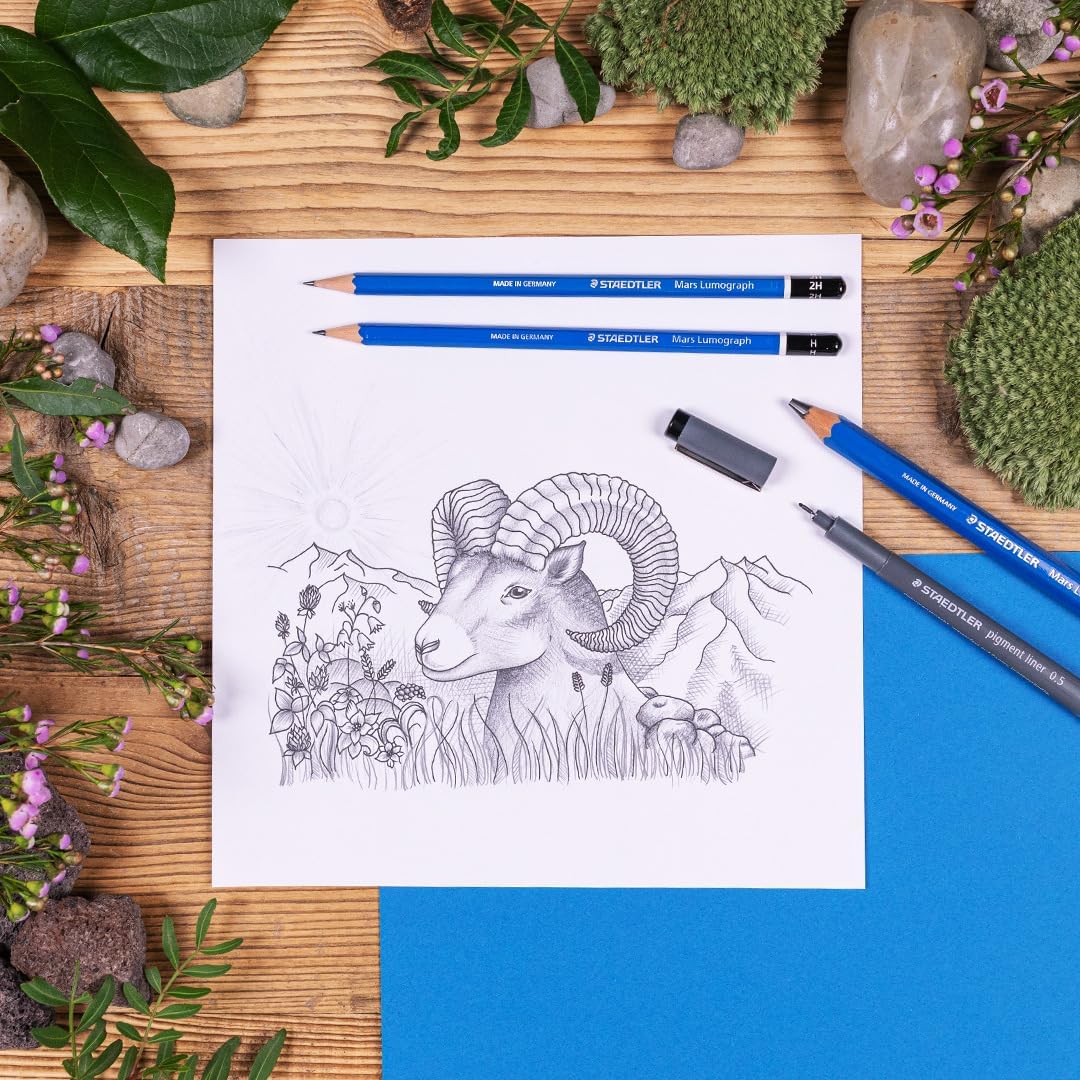 - Mars Lumograph sketch set - 13 pieces - 12 pencils + 1 Mars Plastic Eraser