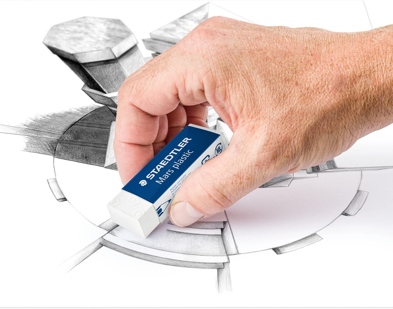 STAEDTLER Mars Lumograph Graphite Artist Pencil Pack, 12 Degrees (8B, 7B, 6B, 5B, 4B, 3B, 2B, B, HB, F, H, 2H), Mars Plastic Eraser, 61 100 P