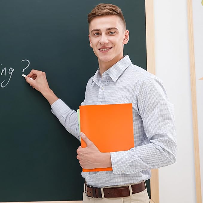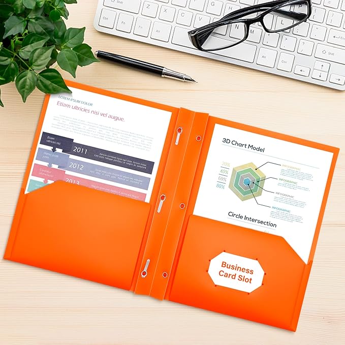 ViVin 12-Pack Sturdy Plastic Folders with Pockets and Prongs, 2 Pocket Folder with 3 Prongs, fits 8.5 * 11 Letter Size Paper, for School, Office and Home (Orange)