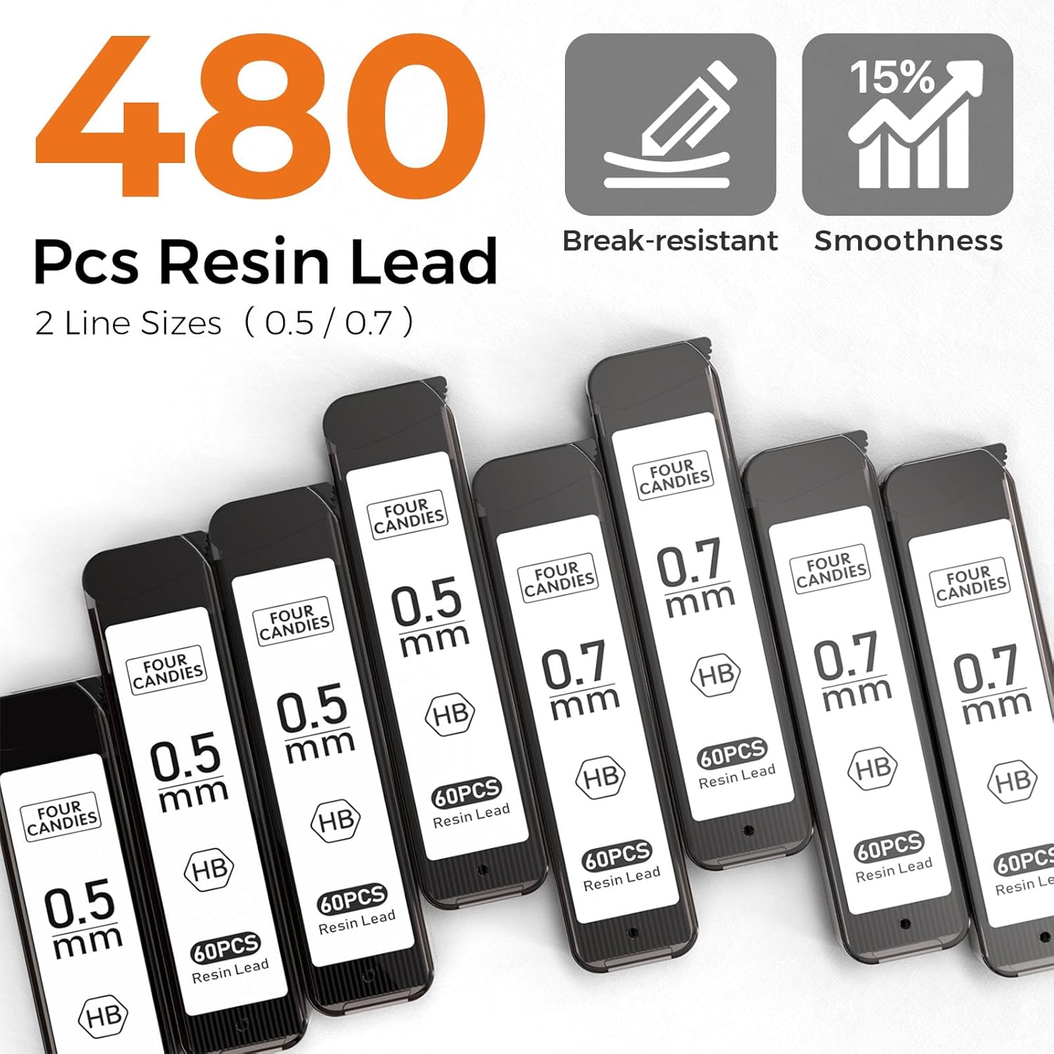 - 【480PCS Resin Lead】8 tubes of 60pcs super capacity leads. A more durable resin lead which doesn’t require sharpening and is not easy to break at the tip or break in the shaft, provides ultra-smooth writing and clear dark lines.