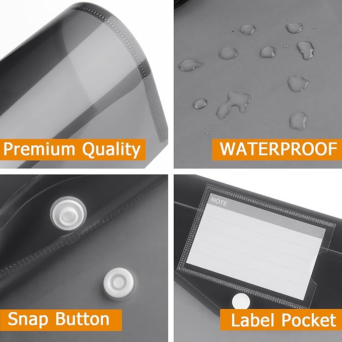 - [Easy Storage] Our plastic envelopes is portable to keep your items organized and help you sort the clutter, the envelopes bags can be used at school, home, work, office travel, and business trip. Outside mini label pocket helps classify and identify your document.