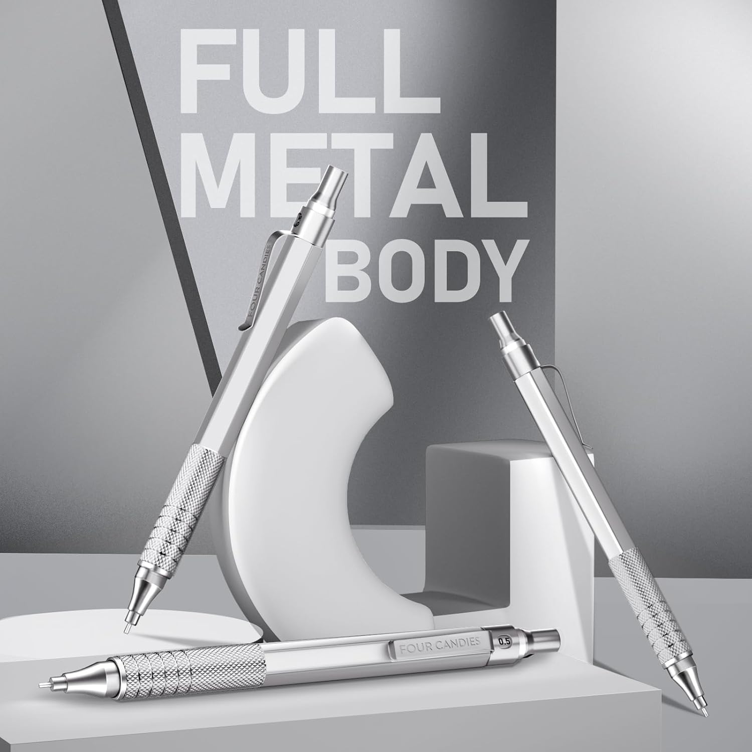- Unmatched Performance: The full- metal body mechanical pencil with state-of-the-art engineering, gives it a professional look, these lead pencils provide a smooth, precise writing experience; The rhombus textured grip ensures comfortable handling.