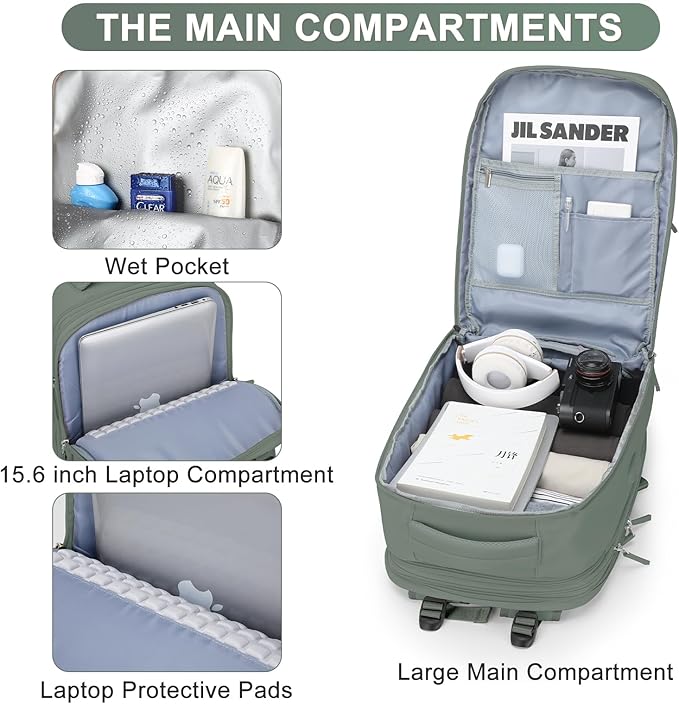 - 【Comfort and Safety】 Comfortable airflow back design, thick and soft multi-panel ventilated padding provides back support. Breathable, adjustable shoulder straps and a chest buckle to relieve shoulder pressure. This backpack can be slipped on the trolley of the suitcase to make traveling easier. Hidden anti-theft zipper pocket on the back of the backpack to prevent your valuables from being stolen.