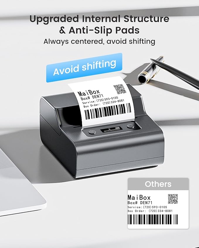- A NEW LOOK WITH THE ADDITION OF NON-SLIP PADS: Bringing a more stable body, Phomemo M221 Bluetooth thermal label maker is not only portable, but it is more stable when printing on the desktop.