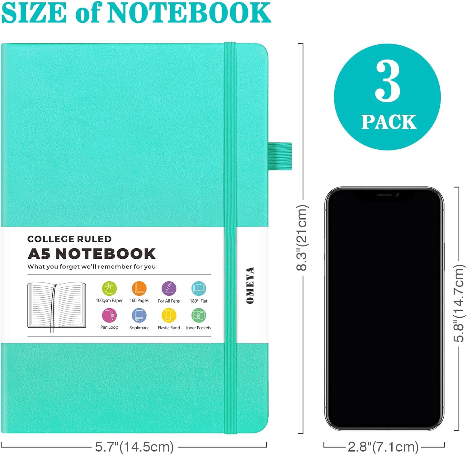 - 【Thoughtful Accessories】Our hard cover notebook comes with a range of practical accessories to enhance your writing experience. Each notebook includes 2 pockets, 2 bookmark ribbons, 1 elastic band, 1 pen loop. And as a bonus, each set of notebooks comes with 3 pens that match the color of the notebooks, along with 160 PCS colorful index & tabs stickers.