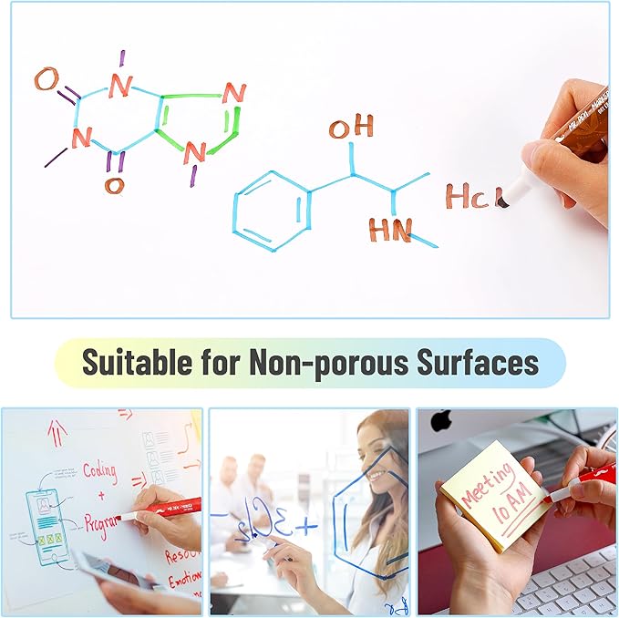 - The ink dries quickly and erases cleanly from most surfaces without smearing or ghosting.