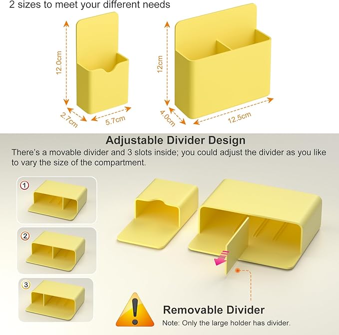 - 【Adjustable Divider Design】- Each whiteboard marker holder has a removable divider and 3 slots inside, you can adjust the compartment size by moving the division ,which can effectively prevent the markers and eraser from constantly slipping to the bottom, also you can take it out entirely if you want to fit more in it. It'll be nice to get your pens off the top of your fridge and down where you can get to them easily. (Only the large holder with removable block).