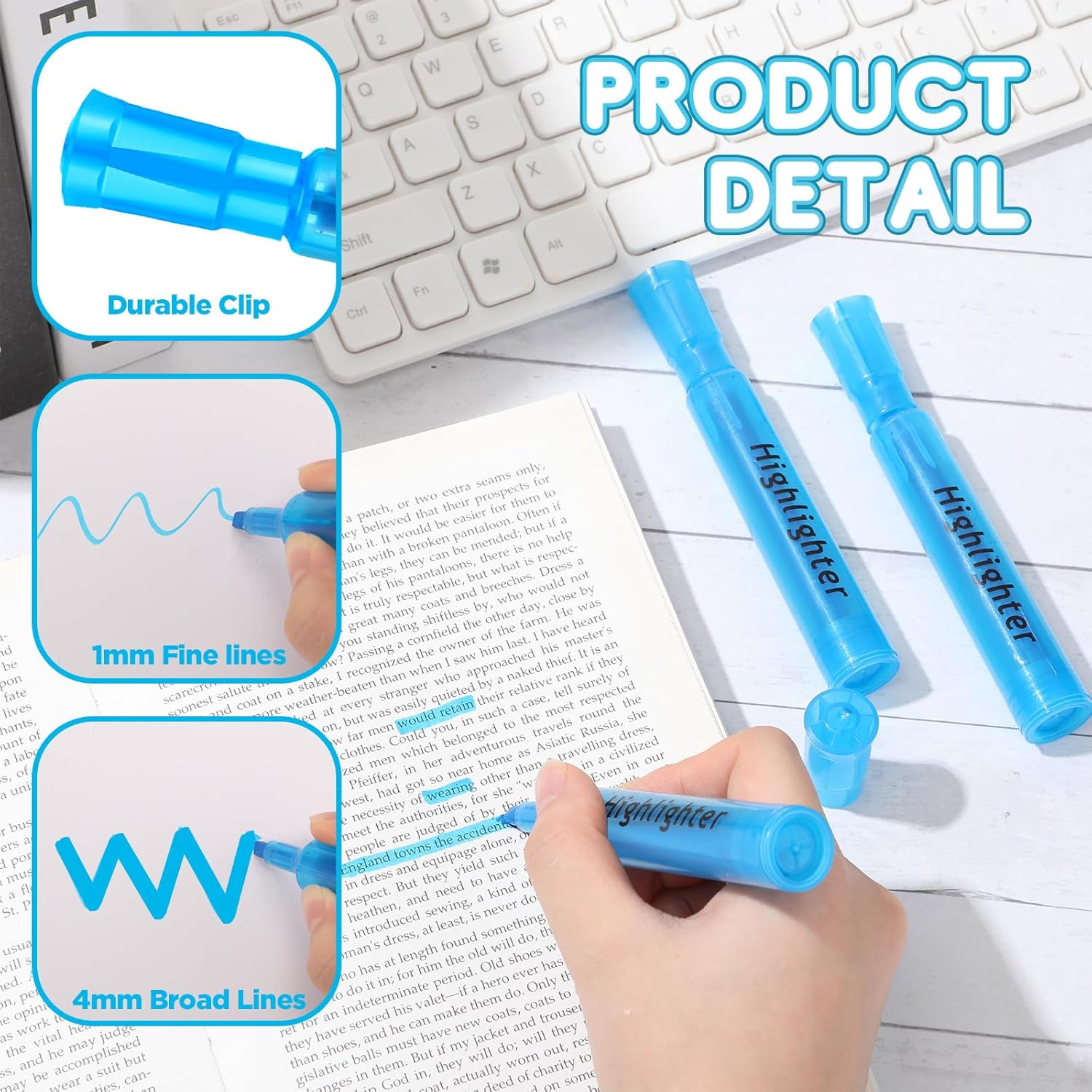 - Convenient Chisel Tip Design: our blue highlighters come with a good chisel tip offering broad highlighting or fine underlining and allow you for creating thick and thin lines; Secure fitting caps can protect the tips when not in use