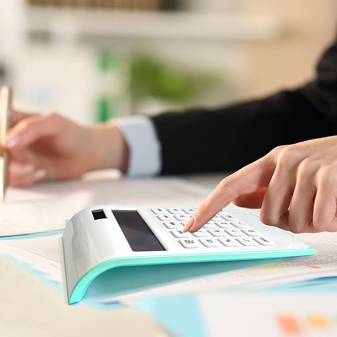 - Quality & Appearance - Desktop calculator large display for women is made of durable ABS to ensure normal daily use; The Elegant and slim design and reasonable button layout make it beautiful and practical, perfect size, fits right on the desk and does all you need in a tight spot.