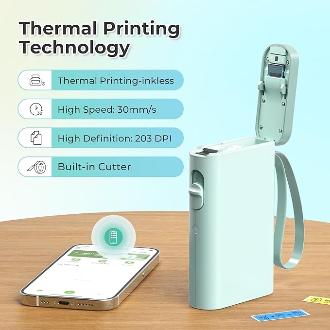 - High-quality Printing: Label Makers with BPA-Free Direct Thermal Technology. Equipped with high-speed chips and 203 DPI, you can enjoy high-definition without relying on ink or toner. Label maker built in durable rechargeable battery, it can work for a long time. This label maker is monochrome printout, which only prints black text. We can create color label and need to use color pattern label tapes for printing.(Note: Not including charging adapter, not suitable for fast charging adapter)