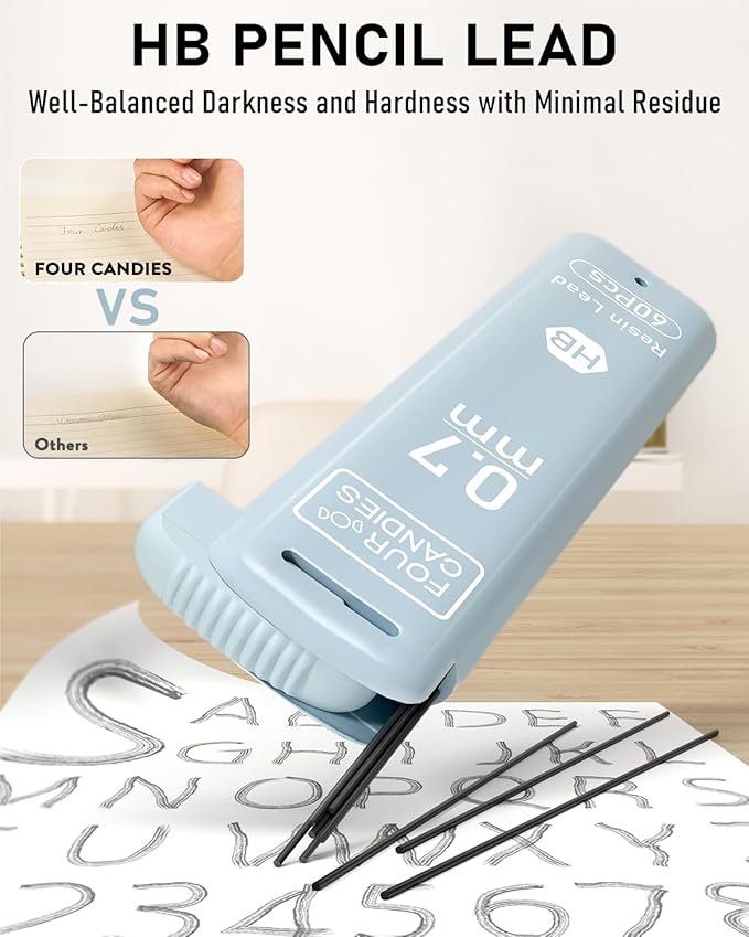 Four Candies 0.7mm Lead Refills in Case, Pack of 720 PCS Black HB #2 Break Resistant Mechanical Pencil Refills, 12 Tubes of 0.7 Lead, 60 Pieces per Tube