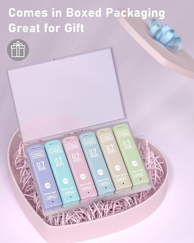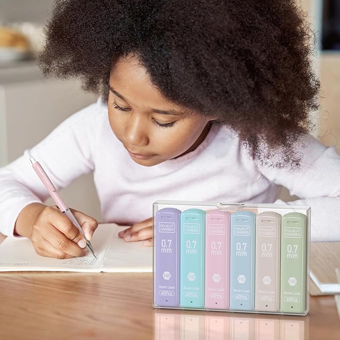 - COLORFUL LEAD CASE: This set of pencil lead boxes is designed in 6 macaron colors. The fresh and adorable hues make it the top choice for students' school supplies. It's worth noting that the leads are made of black resin.