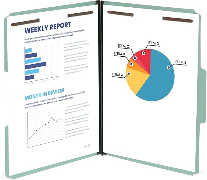 - Pack of 25 gray/green top-tab folders (11.75” x 9.5”) for clutter-free organization.