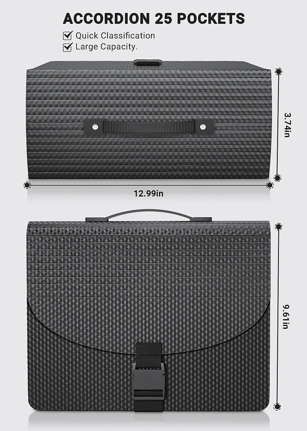 - ✔【HIGH CLASS】 Durable Plastic Handle, the lid is connected to the bottom by a beautiful adjustable buckle,make the folder instantly looks more fashion,when you hold a good amount of documents into file folders,easily take away all important documents anywhere and the buckle is perfect to protect the safety of files,successfully upgraded from traditional accordion file organizer.
